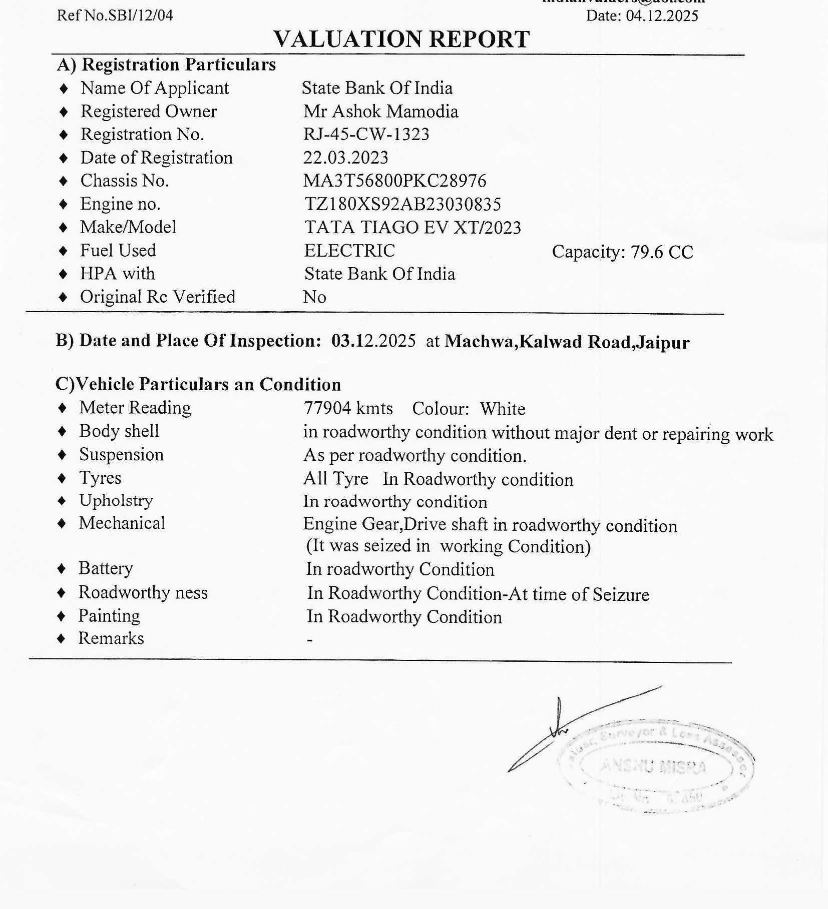 • Car Hypothecation for Sale in Jaipur Chaksu