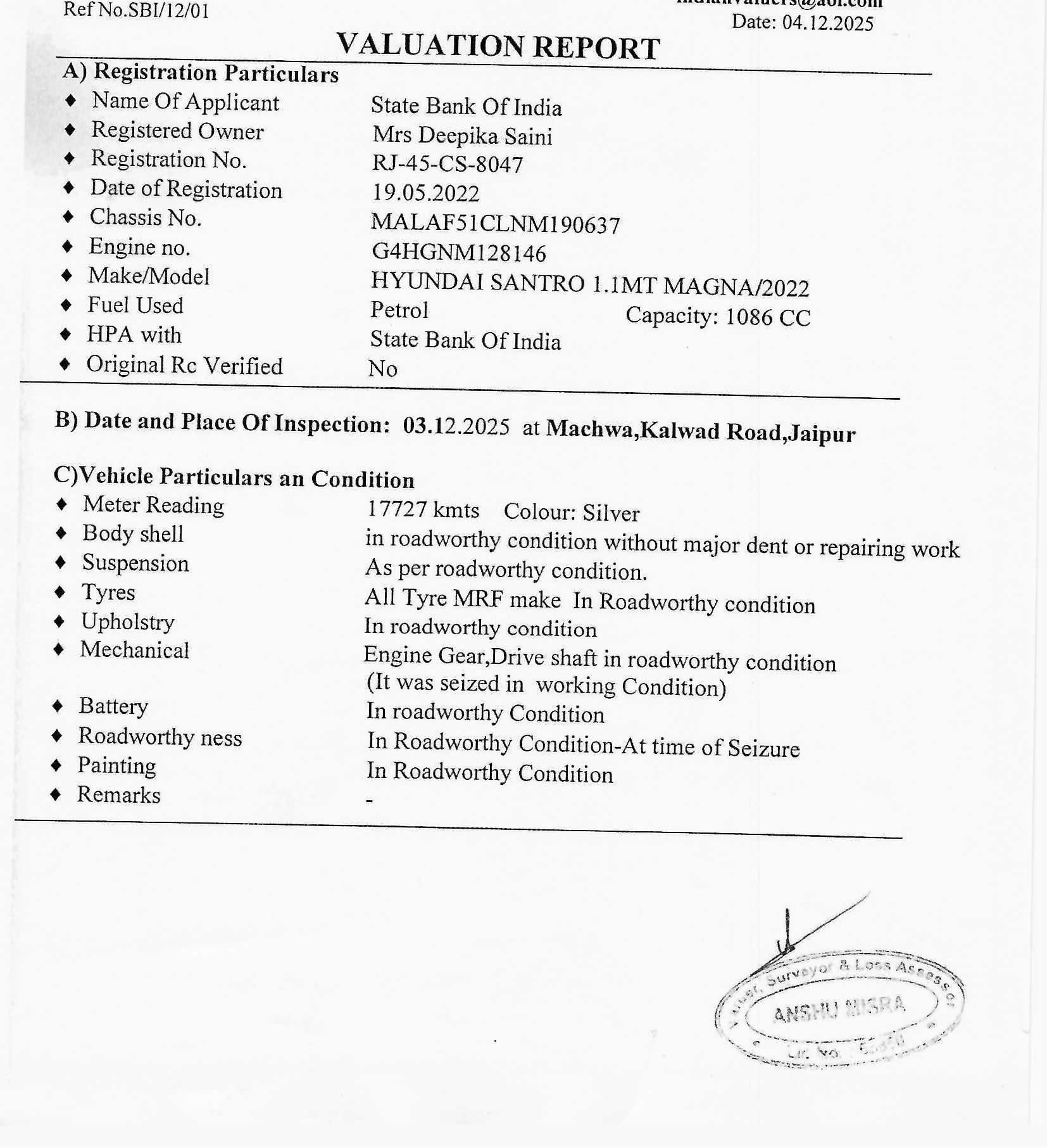 • RJ 45 CS 8047 Car Hypothecation