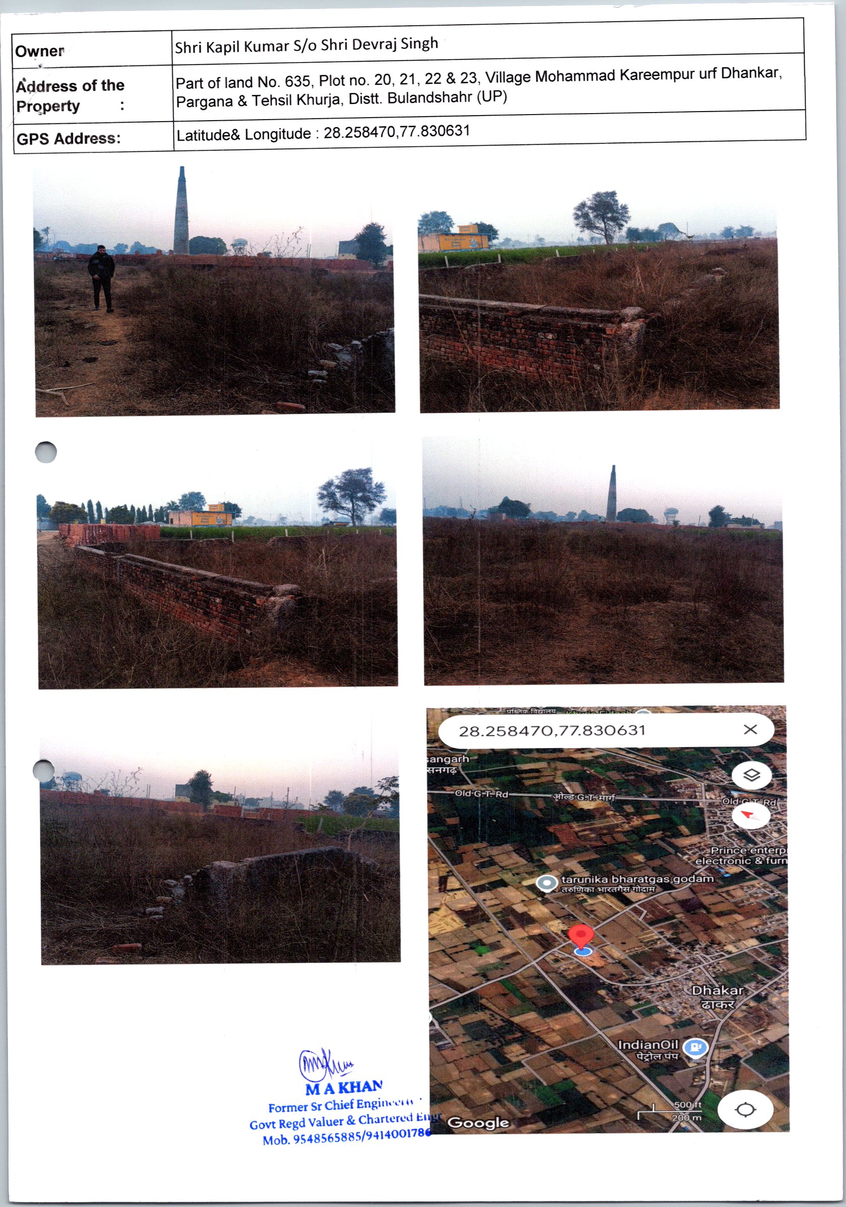 • Residential plot 20,21,22 & 23 part of khasra 635 admeasuring 335.74 sq. mtr. situated at Village Mohammadpur Karimpur urf Dhankar Tehsil Khurja, Bulandshahr, UP